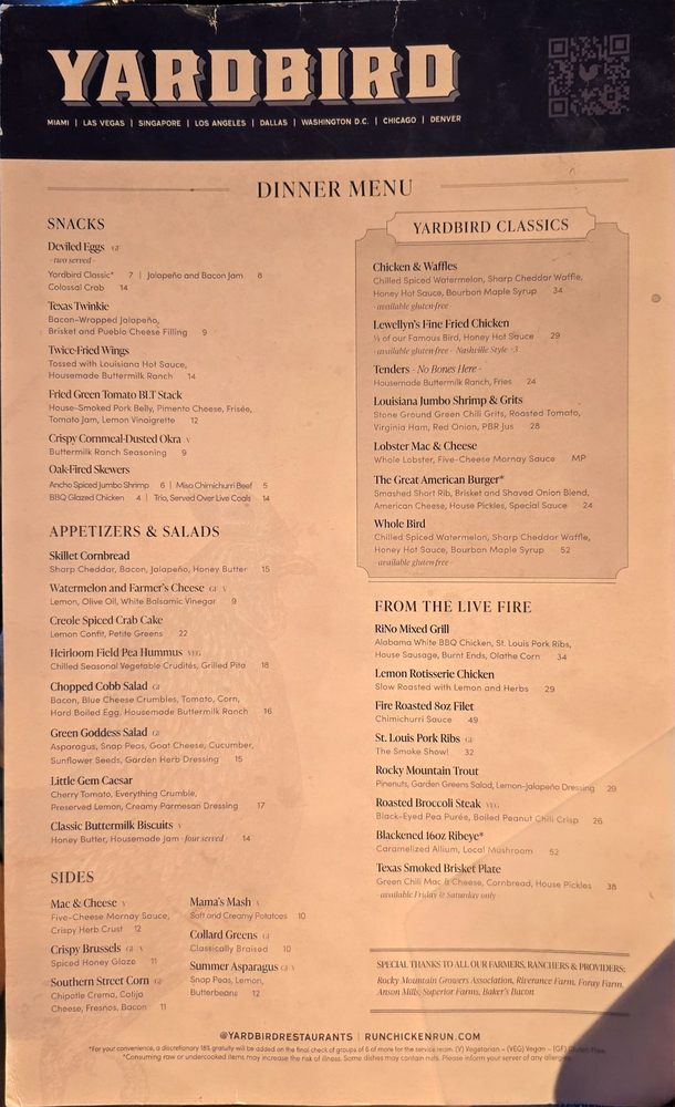 Yardbird, a whiskey bar specializing in Southern cuisine, offers a unique menu with a variety of delicious options. From classic Chicken & Waffles to the indulgent Lobster Mac & Cheese, Yardbird's dishes are sure to impress. The appetizers like Deviled Eggs with jalapeno and bacon jam and Fried Green Tomato BLT are a must-try, setting the tone for a flavorful dining experience. Customer reviews highlight the exceptional service and cozy ambiance, making Yardbird a beloved spot for gatherings. Don't miss out on their signature cocktails and happy hour specials, adding an extra touch to your visit. Overall, Yardbird promises a memorable dining experience with a fusion of Southern comfort food and creative twists on classic dishes.